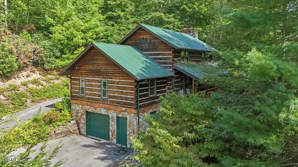Tucked away in the Desirable and private Ivy Wood community, just minutes from the North Carolina border, this charming mountain cabin offers the peace and privacy you've been searching for. The inviting covered front porch, sets the tone for what's inside—a warm and welcoming retreat surrounded by the sights and sounds of East Tennessee's natural beauty. Step through the front door and you'll find an open-concept living space with gleaming hardwood floors, a stone fireplace, and plenty of room for gatherings. The kitchen flows seamlessly into the dining and living area, making entertaining simple and enjoyable. With a recently updated kitchen with granite counter tops and white shaker cabinets, you can cook and entertain with ease while still having the cozy cabin warmth and feel. The Primary on the Main level with a walk-in safe step bath tub and Laundry room offers convenience you often don't find in the mountains. Upstairs, you'll discover two additional bedrooms and another full bath—one of the bedrooms even includes its own stone fireplace, adding a touch of rustic charm and an extra heating option for cooler nights. The full unfinished basement provides endless possibilities—whether you need storage, a workshop, or additional living space, there's room to grow. Outdoors, the screened-in back porch is a highlight, perfect for sipping morning coffee or enjoying dinner while taking in the quiet mountain atmosphere. Whether you're dreaming of a weekend getaway, a seasonal retreat, or a full-time residence, this cabin is an ideal place to call home in the heart of East Tennessee.