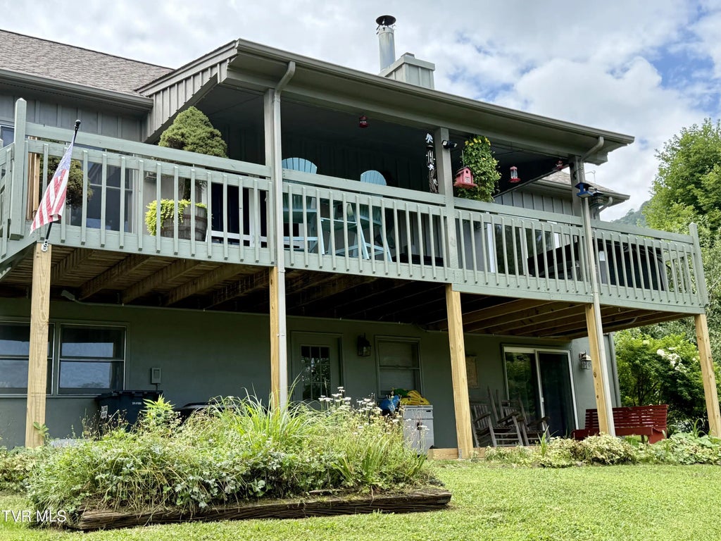 Nestled amidst the breathtaking beauty of the Appalachian Mountains, this exquisite mountain retreat offers unparalleled serenity just moments from the famed Appalachian Trail and Roan Mountain State Park. The home's idyllic location showcases panoramic mountain vistas. A sprawling front porch welcomes you, extending the length of the house and promising tranquil moments in or out of the new hot tube(2024). Inside, a cozy living area flows seamlessly into a stunning, newly renovated (2025) kitchen, boasting expansive quartz countertops. Winter evenings are made magical by the warmth of a gas fireplace. Modern comforts are ensured by a recently installed (2024) HVAC system. Large windows in the kitchen frame breathtaking mountain views, while a charming breakfast nook overlooks the newly fenced backyard—a private sanctuary. The expansive master suite is a haven of relaxation, featuring an ensuite bathroom with a walk-in shower and ample closet space. A convenient half-bath graces the main floor. Upstairs, a loft-style bedroom provides additional sleeping quarters with generous closet storage. A completely separate living area downstairs, complete with a full kitchen, bedroom, bathroom, and living room, presents itself as an ideal in-law suite or guest quarters. A laundry area with washer, dryer, and extra refrigerator space is also conveniently located downstairs. Attached to the one-car garage is a versatile workshop or craft room, adding to the home's practicality. Both front and rear porches offer secluded retreats. The back porch has charming bonus room—an adaptable space ripe for your personal touch—could easily become a sun-drenched haven or a personalized studio. This property is more than a home; it's a sanctuary. Roof: approximately 2021 HVAC: 2024 Interior and exterior paint: 2024 Remodeled kitchen W/extra deep cabinets, quarts countertops and more: 2025 Fireplace propane: 2024 30 amp service for generator. Fence: 2024 LVP throughout: 2024 Septic serviced: 2024 Carpet on stairs: 2024 Tankless water heater(propane) Just minutes from National and State parks.
