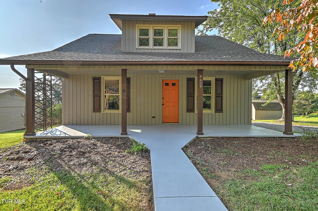 Renovated, Rustic-style Bungalow with MASSIVE Detached Garage in the Indian Springs area of Kingsport, TN. Sits on a large, level and usable 0.7 ACRE LOT off Old Stage Rd. Tons of Curb appeal with the Rustic inspired Cedar siding, front door and covered front porch with concrete walkway. Plenty of parking, concrete parking pad, matching Outbuilding/Shed and an Oversized 28ft. x 30ft. Detached Garage with electricity and plumbed for an Utility sink, offering TONS of opportunity for Storage, Workshop, Etc. Inside, you'll love the cohesive style throughout! Formal living room upon entering that flows into the ''Den'' or Dining room with brick fireplace and Open Kitchen with wood cabinets, granite counters, shiplap backsplash and matching Stainless Steel appliances. One bedroom on the main level with double closets, along with full bathroom with bath/shower combo and spacious Utility/Laundry room that leads to the sweet back deck. Upstairs, you'll find 2 additional Bedrooms, 2nd Bathroom with stand up shower and a ''flex'' space that could serve as a 4th bedroom, Office, playroom or whatever your family needs it for! All bedrooms have an oversized closet too! Plus a small unfinished basement area for additional storage. Multiple updates throughout including New Roof, New HVAC, replacement windows and more!