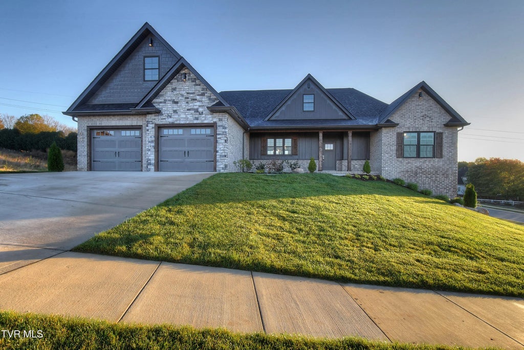 Stunning new construction located in Johnson City's highly sought after community, Glaze Farm. The Norris floor plan offers the convenience of one level living with 3 bedrooms, 2 baths AND a 4 seasons sunroom all situated on a basement foundation and corner lot. This open floor plan home has hardwood flooring throughout (NO carpet!) and an abundance of trim work with crown molding, tray ceilings, custom brick fireplace, and accent walls. The living room is oversized and open to the kitchen and sunroom, making it perfect for family gatherings or entertaining. The chef of the family will fall in love with the upgraded kitchen offering wood grain shaker style cabinetry (soft close doors and drawers), quartz countertops, subway tile backsplash, wall oven/microwave, cabinetry hood vent, gas cooktop, island, and a dining area. The primary suite will impress with its large size, tray ceilings, accent wall, dual vanity sinks, custom tile oversized corner walk in shower, free standing soaker tub, and closet with laminate shelving. There are 2 additional bedrooms, each with large closets, a full bathroom and laundry room with sink. The sunroom is the ideal flex space and can be used as an office, playroom, additional living room, the possibilities are endless. The covered back deck with maintenance free TREX decking overlooks the large backyard and walking trail and offers a great space for outdoor entertainment. The home is situated on a corner lot with an additional 3rd car garage in the basement. The 2200+ sq ft unfinished walkout basement is ideal for future expansion or storage and is plumbed for a bath. Natural gas availability- HVAC, tankless water heater, gas cooktop and fireplace. This home is loaded with upgrades throughout!! Glaze Farm is a brand new upscale neighborhood conveniently located in Johnson City near Boone Lake, shopping, schools and restaurants. Zoned for Johnson City City Schools (Lake Ridge Elementary!) featuring large lots and walking trails. All information herein deemed reliable but subject to buyer's verification. Taxes not yet assessed. Estimated completion- October 2025