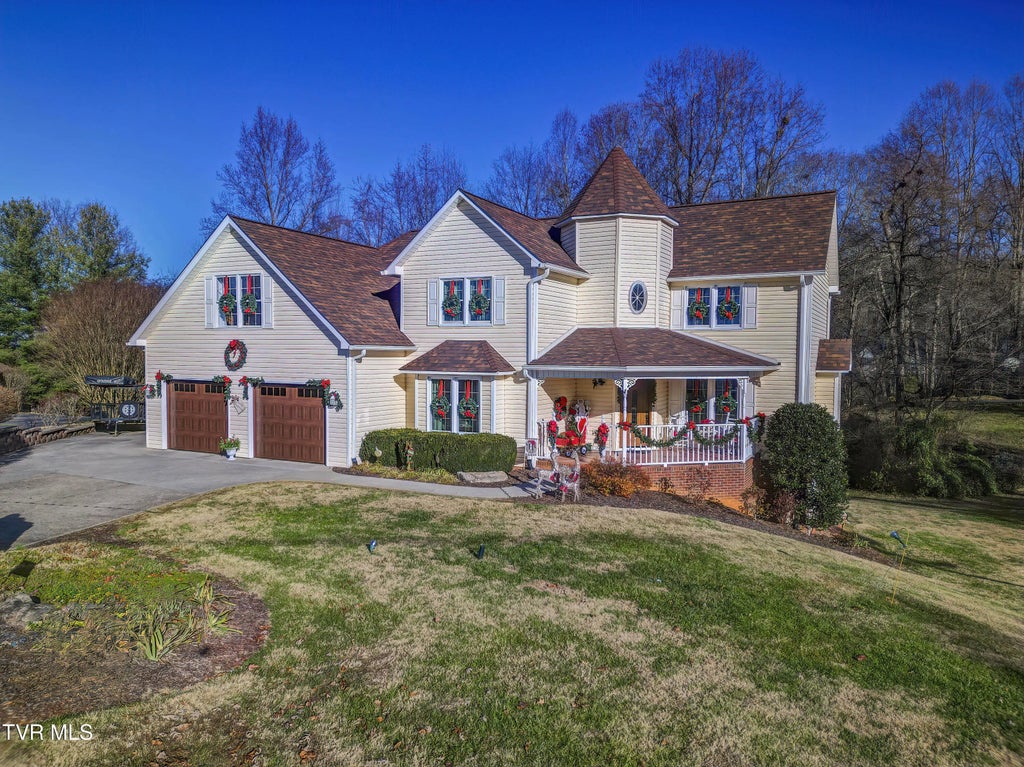 If you're looking for character, large rooms, and a home in a quiet cul-de-sac in a desirable neighborhood, 130 Hillview Court is the one for you! Just 15 minutes from downtown Johnson City, 15 minutes from downtown Jonesborough, 15 minutes from Tri-Cities Regional Airport, 7 minutes from I-26 - the central location is unbeatable. From the moment you see the turret and the welcoming front porch, the Victorian charm wins you over. The dining room, sitting room, kitchen and den downstairs are ideal for a cozy family gathering or simply daily life. Upstairs you'll find 3 bedrooms - but not just any bedrooms: The primary suite has a gas fireplace, sitting room, and additional storage, along with the en suite bathroom with a large soaking tub! All new windows have just been installed, along with a new garage door, recent roof replacement, and a new back porch. The full walkout basement with garage door has so much space for an exercise room, workshop, and storage for all of your holiday decorations. There is a firepit along the tree line to enjoy on cool evenings. The potential is endless at this home! Come see for yourself! Schedule a showing today! All information deemed reliable, buyer or buyer's agent to verify.
